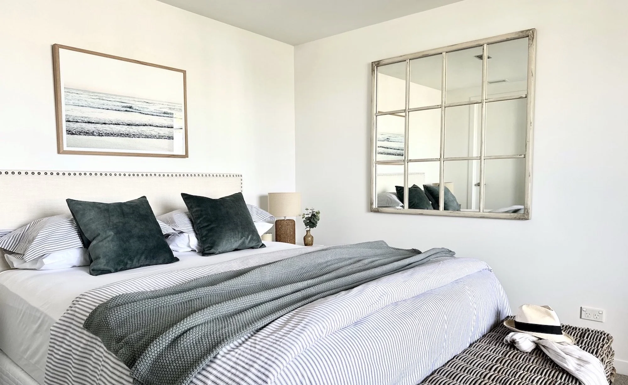 Bay Dream ApartmentA coastal-inspired update reflects its seaside location. Custom headboards, luxury linens and thoughtful details make this holiday home effortlessly inviting.